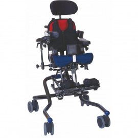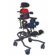 Aktivitāšu krēsls ir aprīkots ar galvas un kāju balstu, drošības vesti, sānu malām un abduktoru.