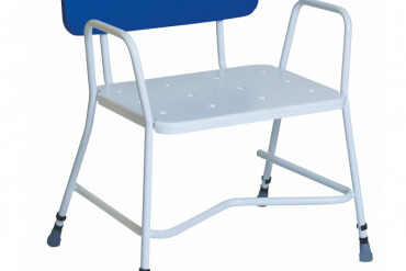 Īpaši plats dušas krēsls ar regulējamu augstumu piemērots personām ar palielinātu svaru higiēnas aktivitātes veikšanas atvieglošanai.